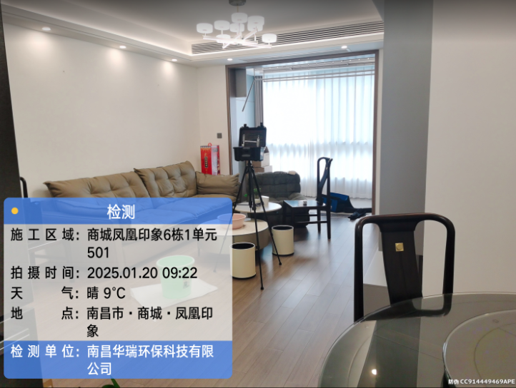 項(xiàng)目名稱:商城鳳凰印象6棟1單元501甲醛檢測(cè)施工日期:2025.1.20