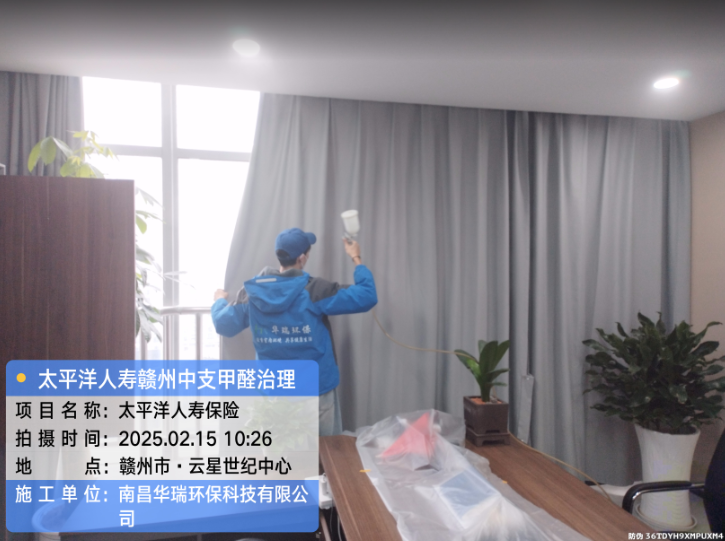 項(xiàng)目名稱(chēng):太平洋人壽保險(xiǎn)贛州支行甲醛治理施工日期:2025.2.15