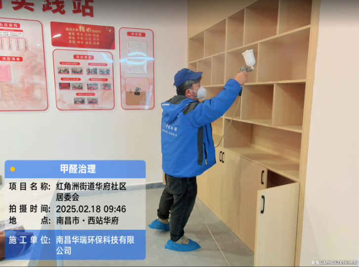項(xiàng)目名稱(chēng):紅角洲街道華府社區(qū)居委會(huì)甲醛治理施工日期:2025.2.18
