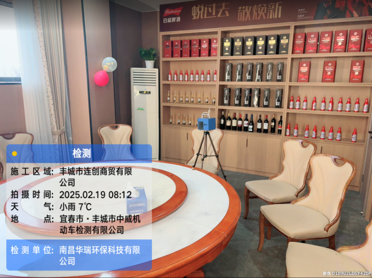 項(xiàng)目名稱(chēng):豐城市連創(chuàng)商貿(mào)有限公司甲醛檢測(cè)施工日期:2025.2.19