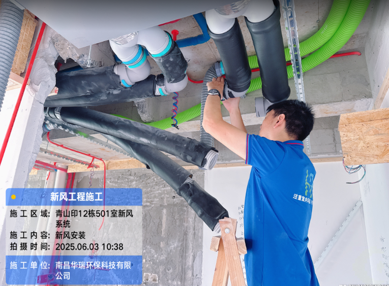 項目名稱:青山印12棟501室新風安裝施工日期:2025.06.03