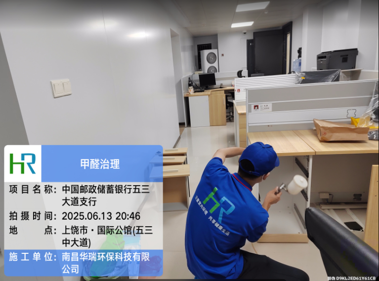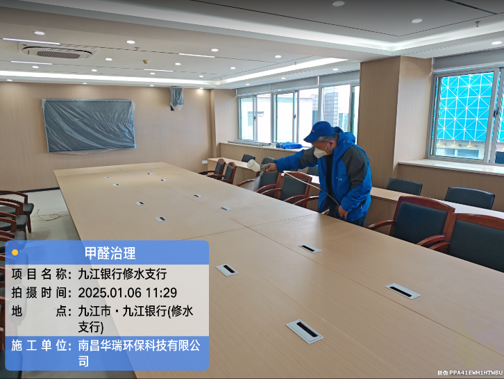 項目名稱:九江銀行修水支行甲醛治理施工日期:2025.1.6