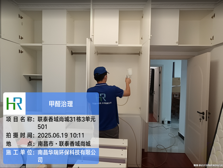 項目名稱:聯(lián)泰香域尚城31棟3單元501甲醛治理施工日期:2025.6.19