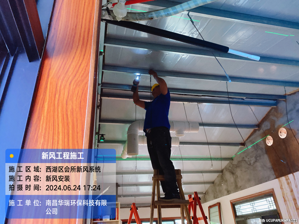 項(xiàng)目名稱:新風(fēng)安裝西湖區(qū)會(huì)所施工日期:2024.6.23-25
