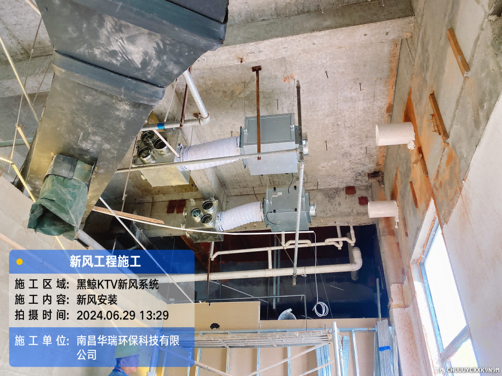 項(xiàng)目名稱:新風(fēng)安裝黑鯨KTV施工日期:2024.6.29-7.2