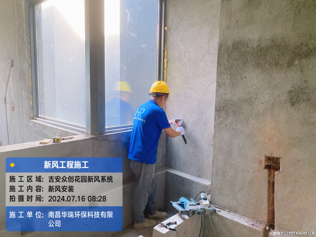 項(xiàng)目名稱:新風(fēng)安裝吉安眾創(chuàng)花園施工日期:2024.7.15-7.17