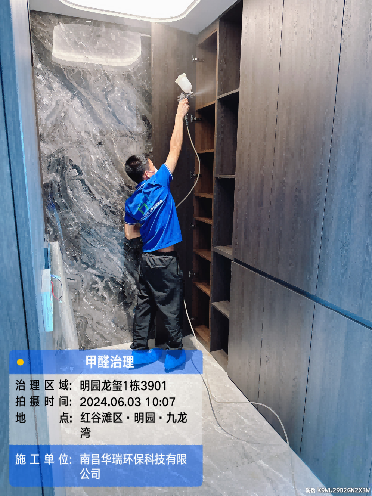 項目名稱:甲醛治理明園龍璽1棟3901施工日期:2024.6.3-6.4