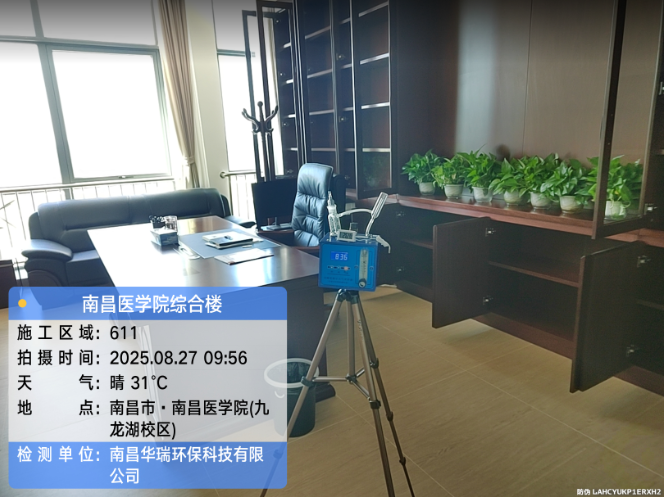 項目名稱:南昌醫(yī)學院(九龍湖校區(qū))甲醛檢測施工時間:2025年8月27日