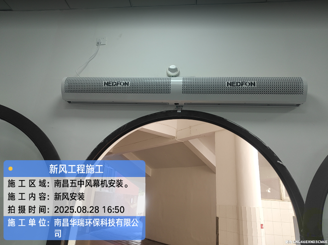 項目名稱:南昌五中風幕機安裝施工時間:2025年8月28日