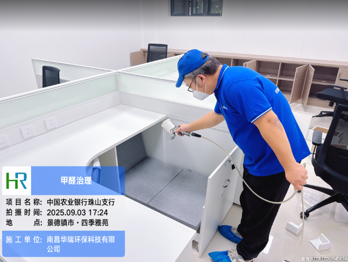項目名稱:中國農(nóng)業(yè)銀行珠山支行甲醛施工時間:2025年9月3日