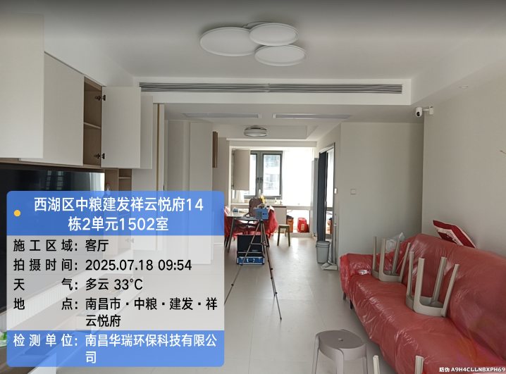 項目名稱:西湖區(qū)中糧建發(fā)祥云悅府14棟2單元1502室甲醛檢測施工日期:2025.7.18