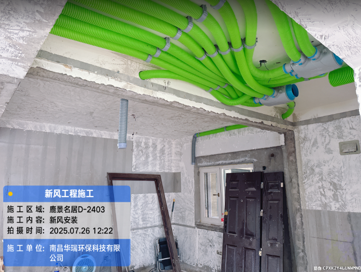 項目名稱:鹿景名居D-2403新風安裝施工日期:2025.7-26